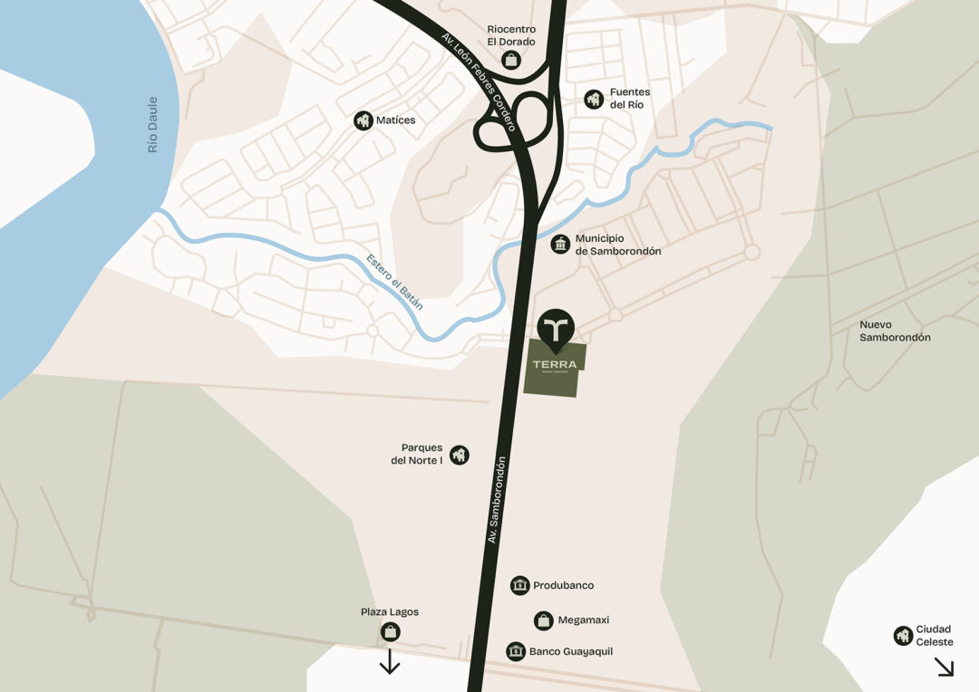 Un centro de negocios y encuentro que atrae a los públicos de mayor poder adquisitivo. Terra Town Center es el Primer Fashion Mall de Samborondón, ofreciendo más de 130 locales diseñados para convertirse en la próxima referencia de moda, alta gastronomía y entretenimiento de la ciudad.